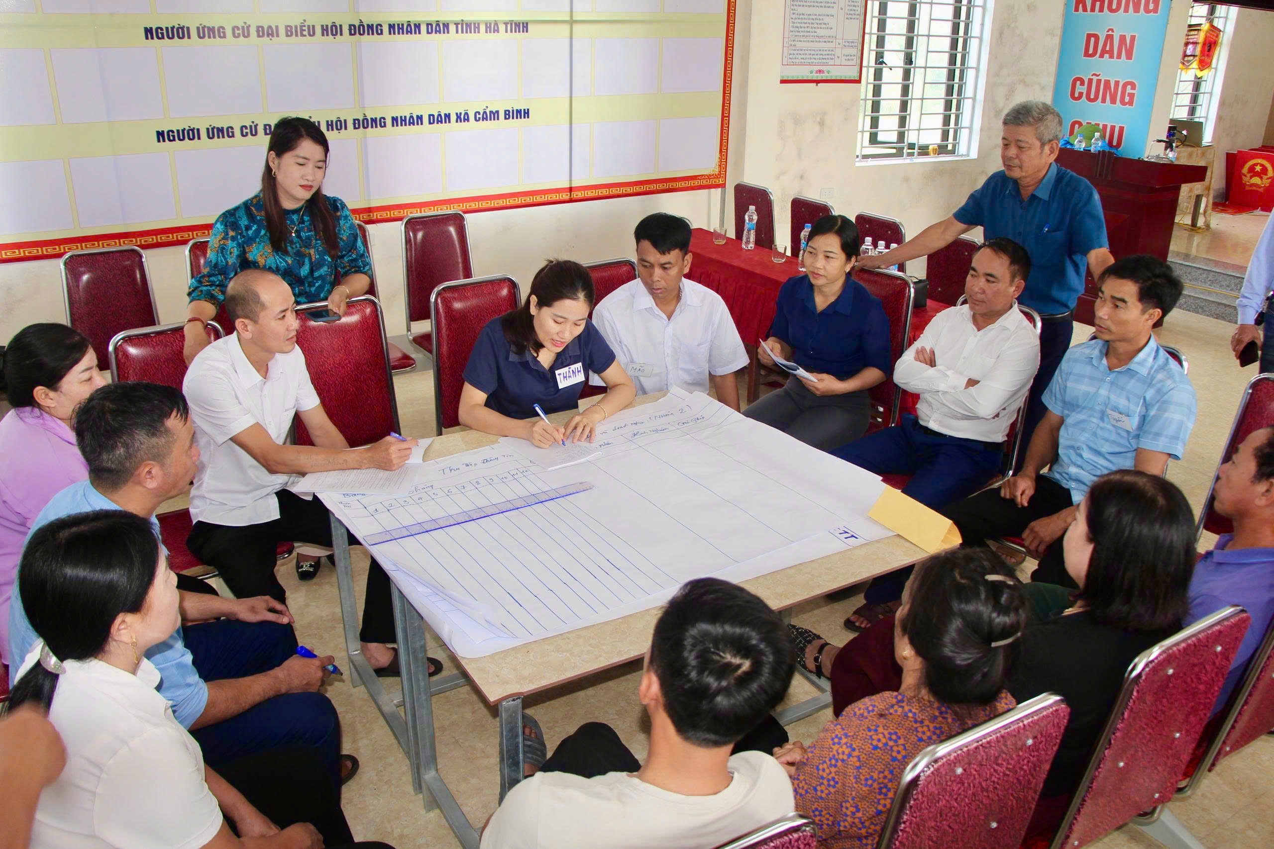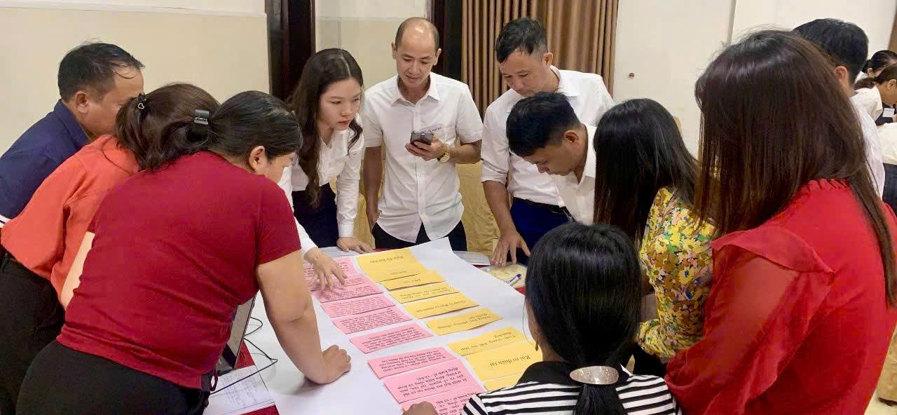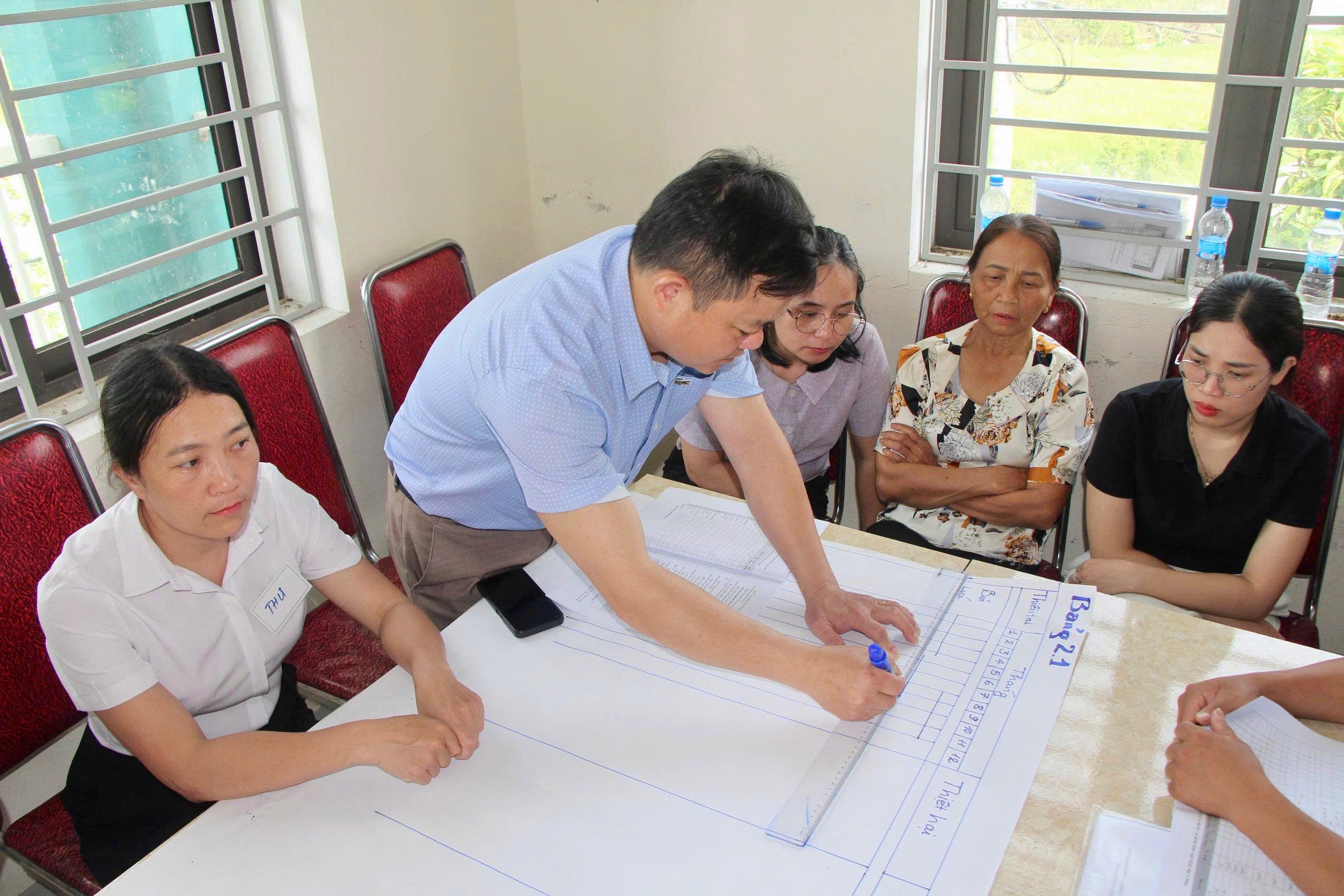 Đặc biệt, trong khuôn khổ chương trình tập huấn, các học viên đã được tham gia thực hành trực tiếp các công cụ đánh giá rủi ro thiên tai dựa vào cộng đồng tại xã Cẩm Bình. Thông qua hoạt động thực tế, học viên được áp dụng các phương pháp như lập bản đồ rủi ro, phân tích lịch sử thiên tai, xác định các khu vực dễ bị tổn thương và nguồn lực sẵn có tại địa phương. Qua đó, giúp nâng cao kỹ năng thực hành, khả năng làm việc với cộng đồng và vận dụng hiệu quả vào quá trình hỗ trợ các xã triển khai đánh giá rủi ro và xây dựng kế hoạch phòng, chống thiên tai trong thời gian tới.