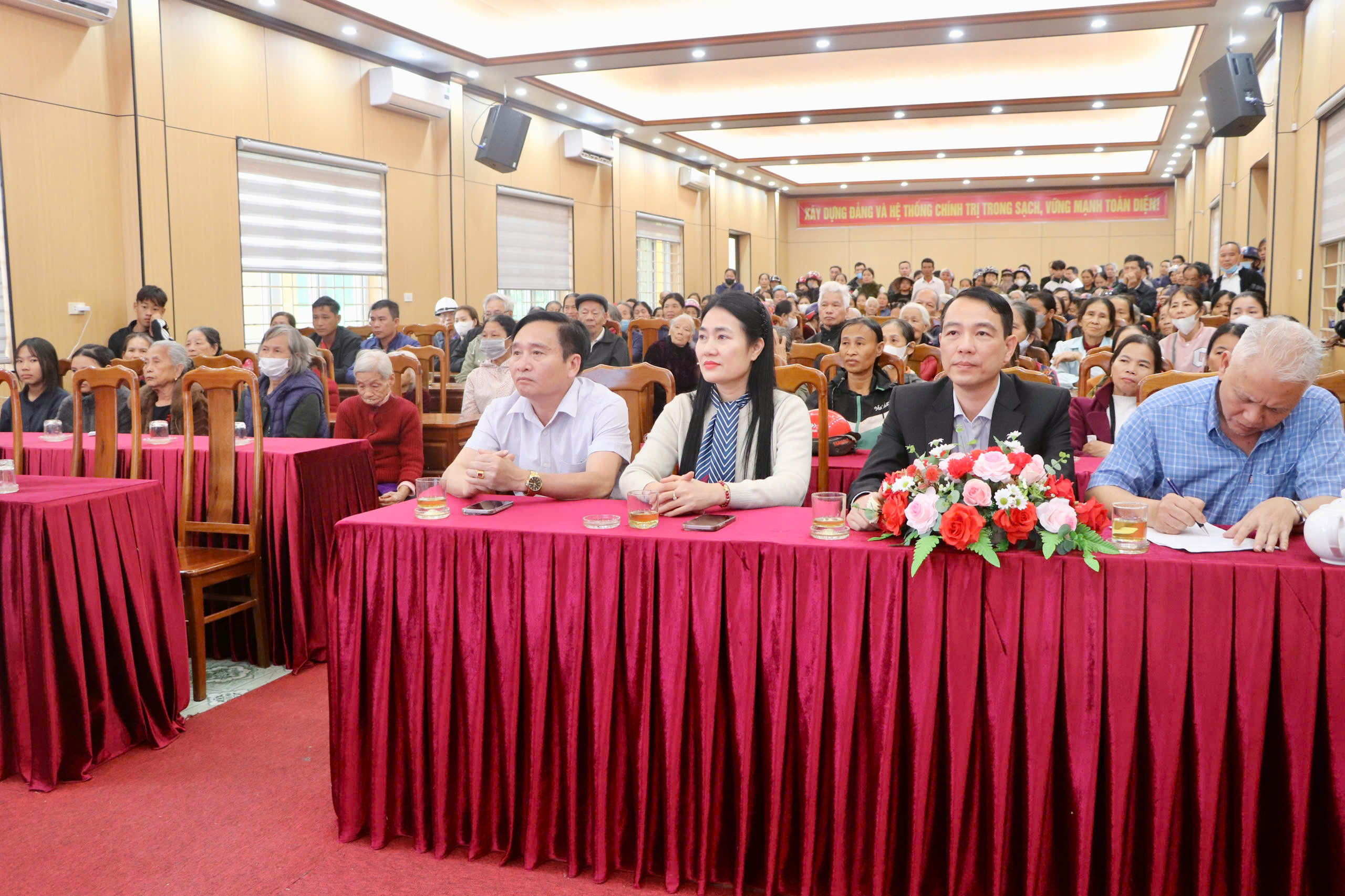 Dự và trực tiếp trao quà có đồng chí Nguyễn Thị Việt Hà- Phó Chủ tịch HĐND tỉnh; Đại tá Nguyễn Ngọc Nguyên- Phó chỉ huy trưởng Ban chỉ huy Biên Phòng Hà Tĩnh; ở xã có đồng chí Nguyễn Quang Điền- Bí thư Đảng uỷ, Chủ tịch HĐND xã; đồng chí Nguyễn Thanh Sơn- Phó Bí thư Đảng uỷ, Chủ tịch UBND xã; đồng chí Lê Thanh Yên- UVBTV, Chủ tịch UBMTTQ xã cùng đại diện các ban, ngành, đoàn thể xã.