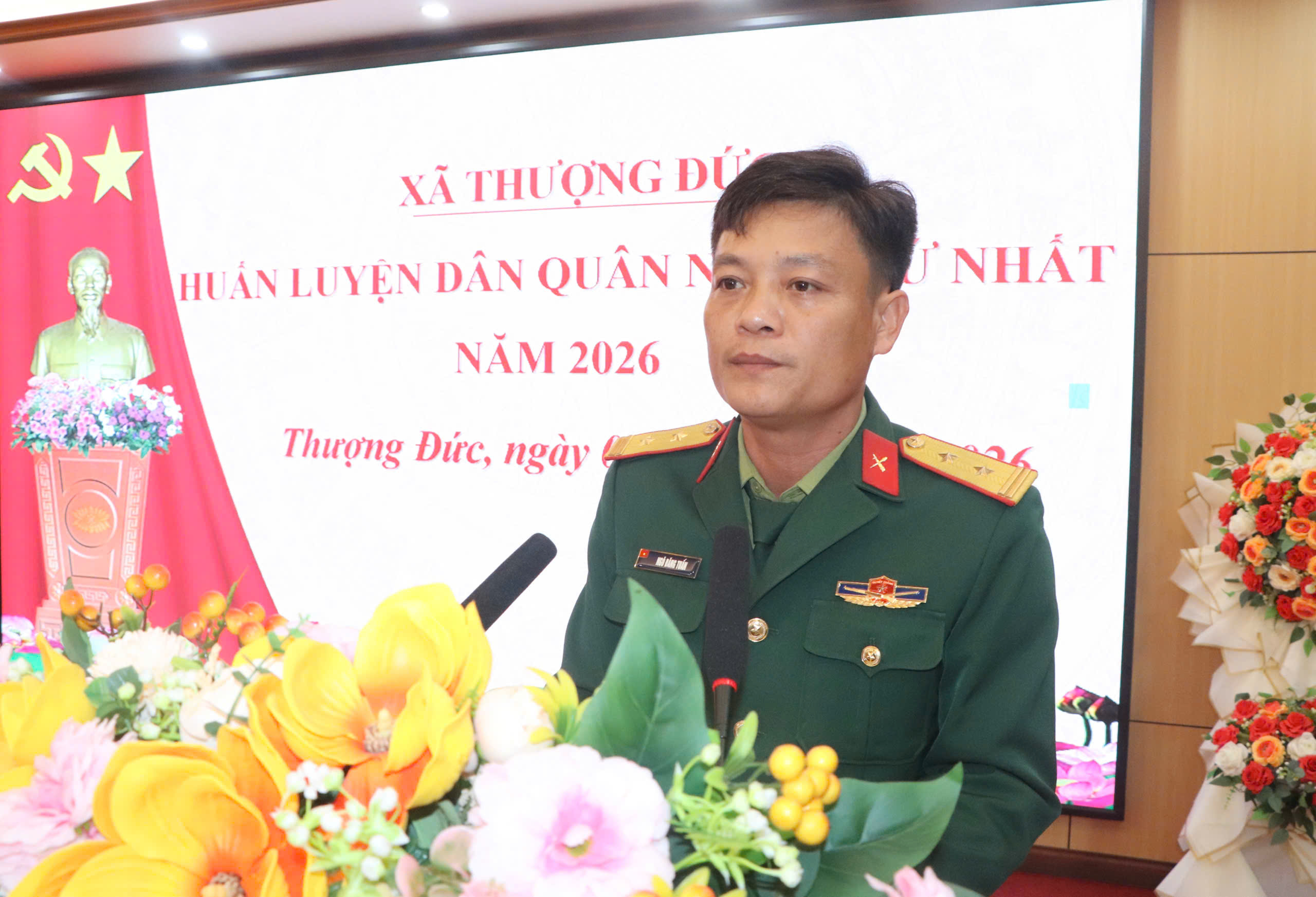 Dự lễ khai mạc có đ/c Nguyễn Quang Điền- Bí thư Đảng ủy, Chủ tịch HĐND xã; đ/c Nguyễn Thanh Sơn- Phó Bí thư Đảng ủy, Chủ tịch UBND xã; các đ/c Thường vụ Đảng ủy, HĐND, UBND xã, MTTQ, trưởng các ban ngành đoàn thể xã và các đồng chí chiến sĩ Dân quân tham gia huấn luyện.