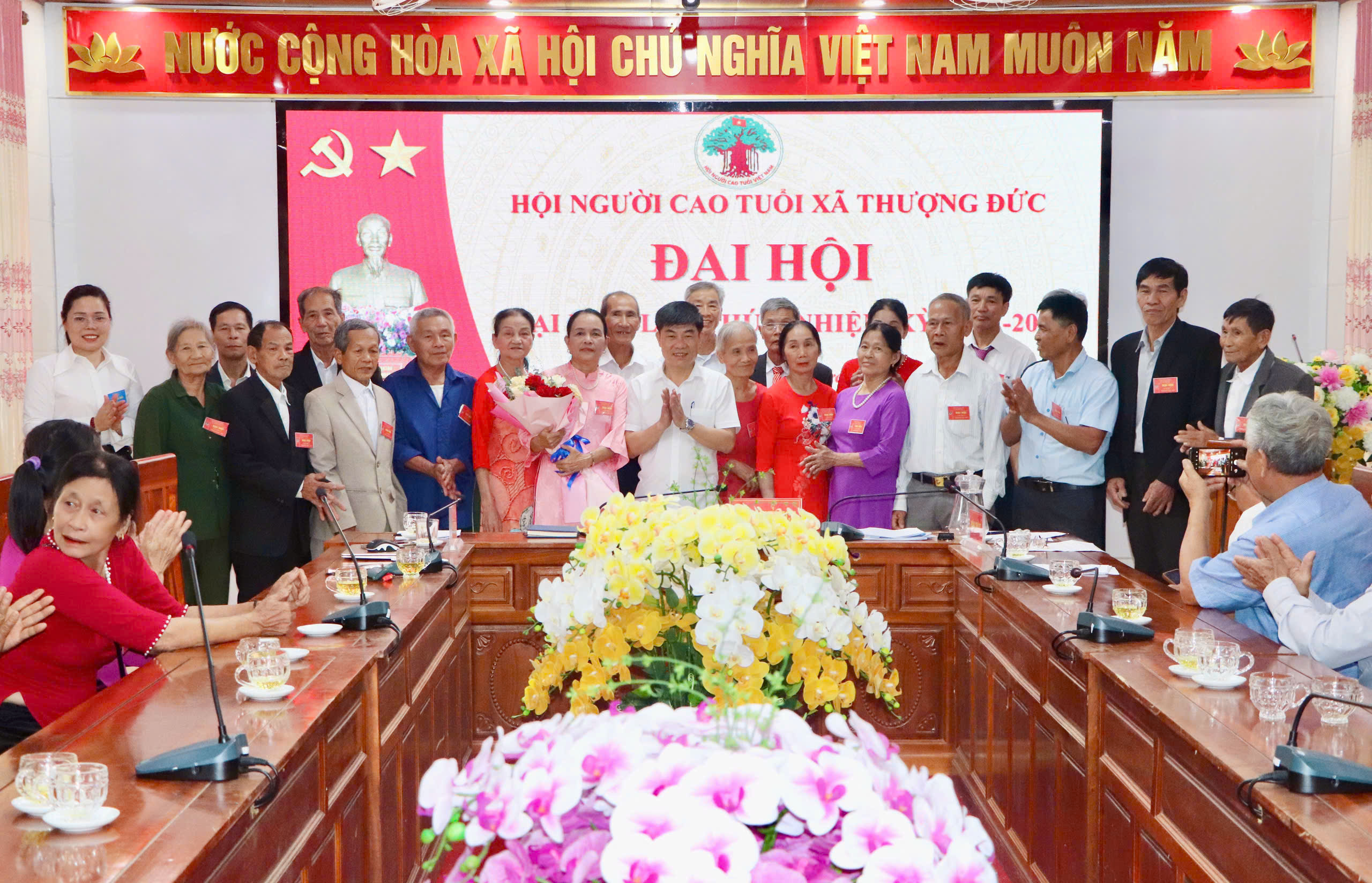 Lãnh đạo xã Thượng Đức tặng hoa chúc mừng BCH Hội NCT nhiệm kỳ mới