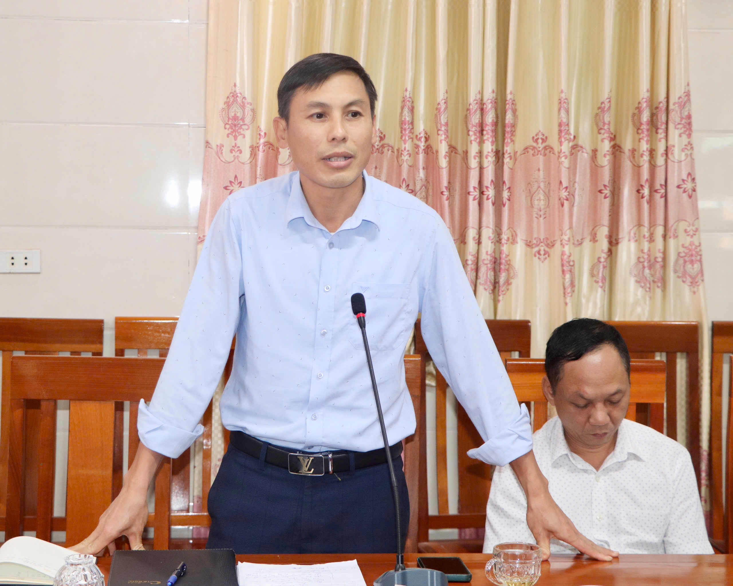 Đồng chí Nguyễn Thanh Sơn- Phó Bí thư Đảng ủy, Chủ tịch UBND xã, Bí thư Đảng ủy cơ quan UBND xã phát biểu chỉ đạo tại hội nghị.