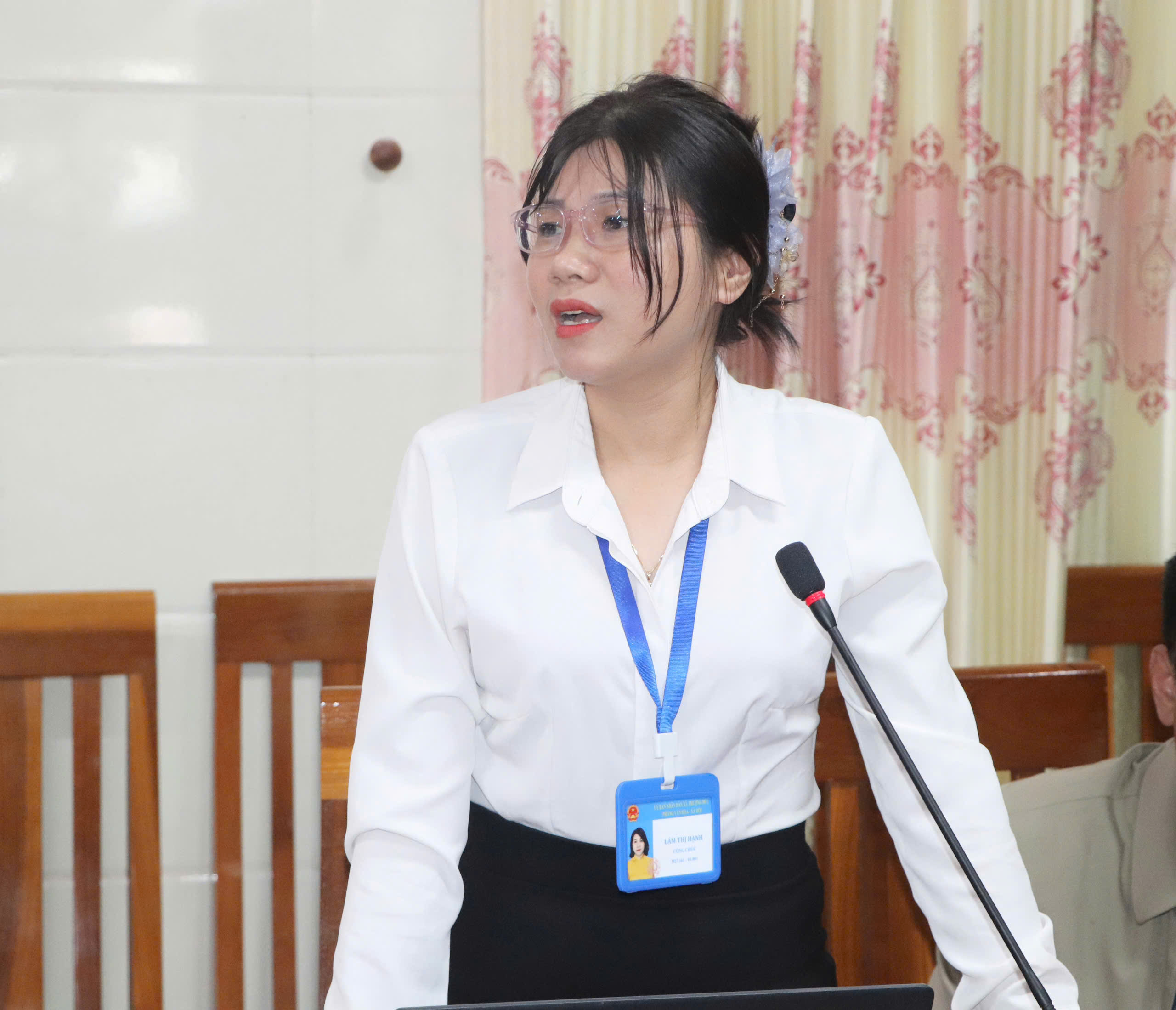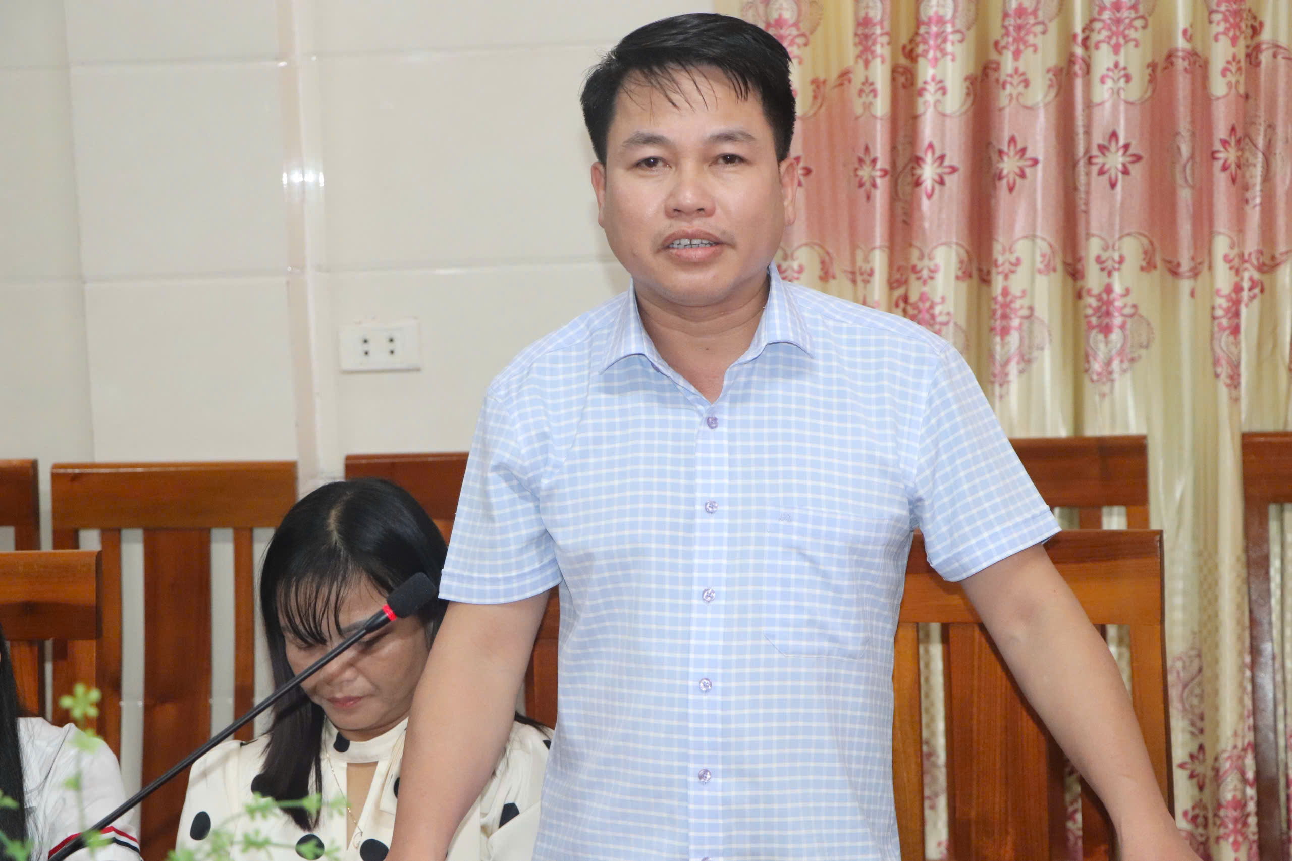 Đảng viên cơ quan UBND xã phát biểu tham luận tại hội nghị.