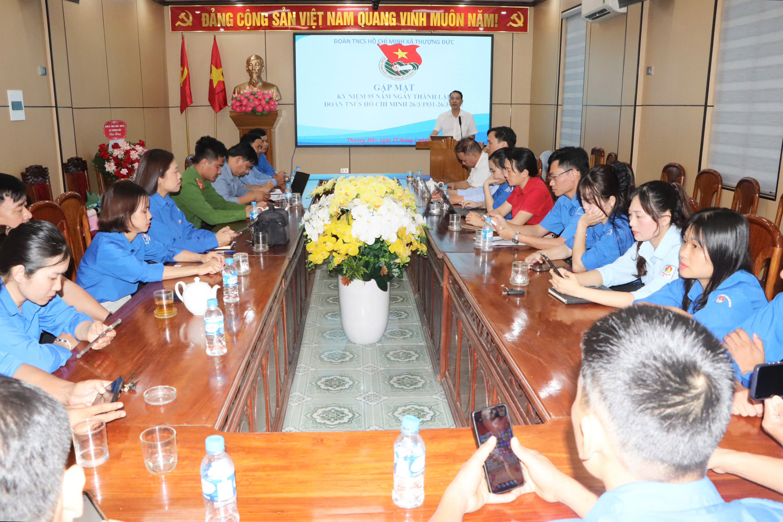 Dự buổi gặp mặt có các đồng chí: Nguyễn Quang Điền- Bí thư Đảng ủy, Chủ tịch HĐND xã; Nguyễn Thanh Sơn- ,Phó Bí thư Đảng ủy, Chủ tịch UBND; Lê Thanh Yên- UVBTV, Chủ tịch Ủy ban MTTQ xã; đại diện các ban, ngành, đoàn thể xã cùng các đồng chí Ủy viên BCH Đoàn xã, Bí thư, Phó Bí thư các chi đoàn trực thuộc.