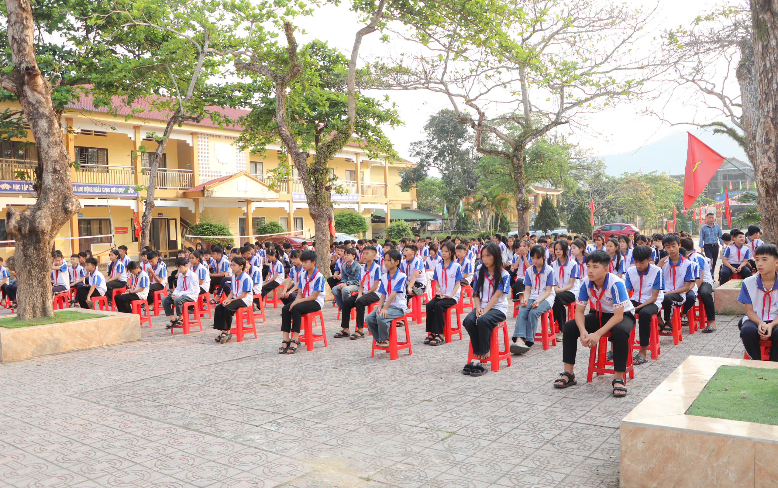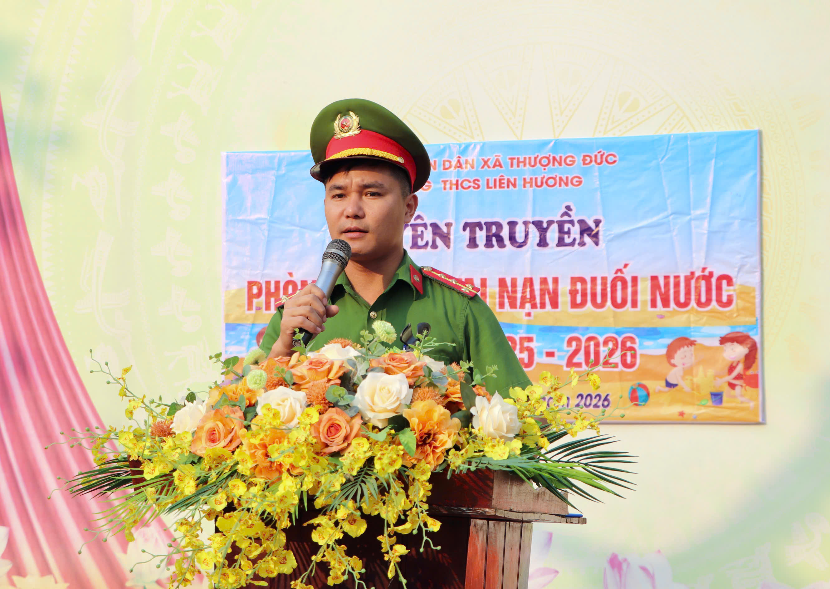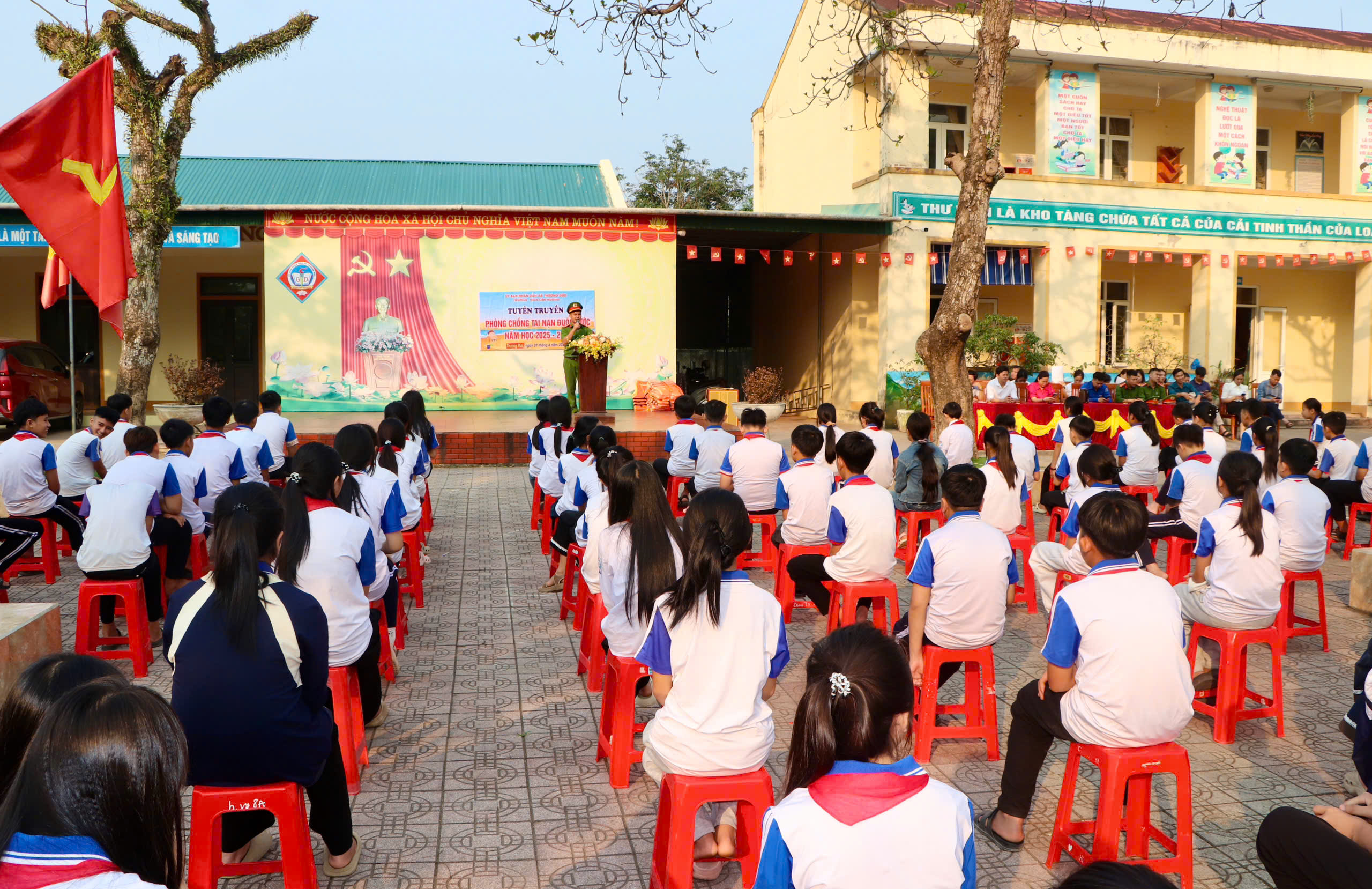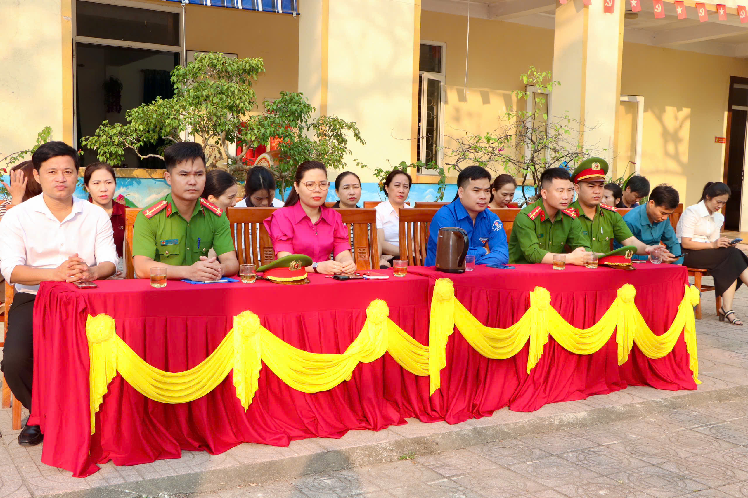Tham dự có đồng chí Nguyễn Ngọc Bích- Trưởng Phòng VH-XH xã; Nguyễn Quốc Hùng-Bí thư Đoàn thanh niên xã; Đại diện lãnh đạo Công an xã; Hội cha mẹ học sinh và toàn thể cán bộ, giáo viên, nhân viên và học sinh nhà trường.