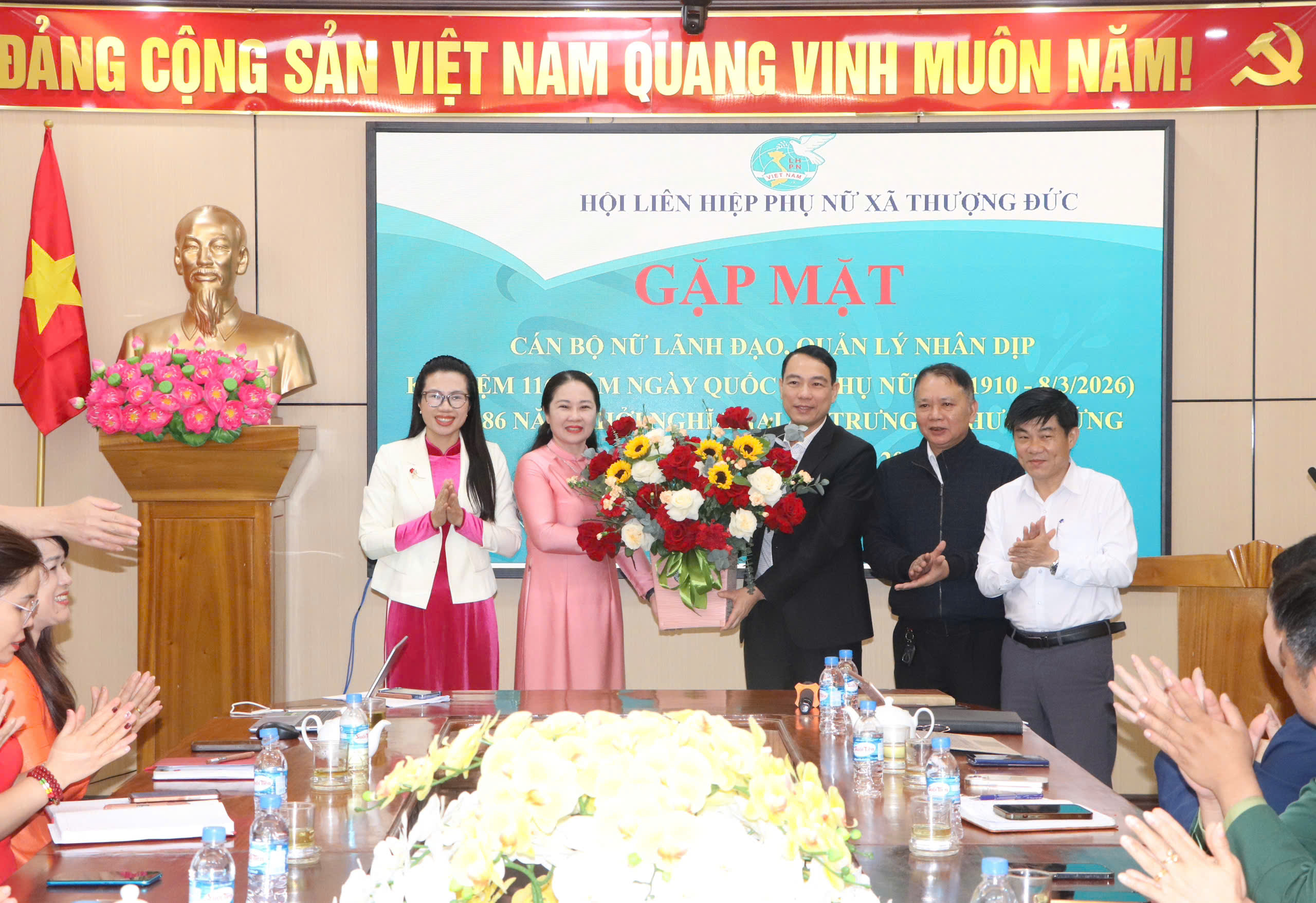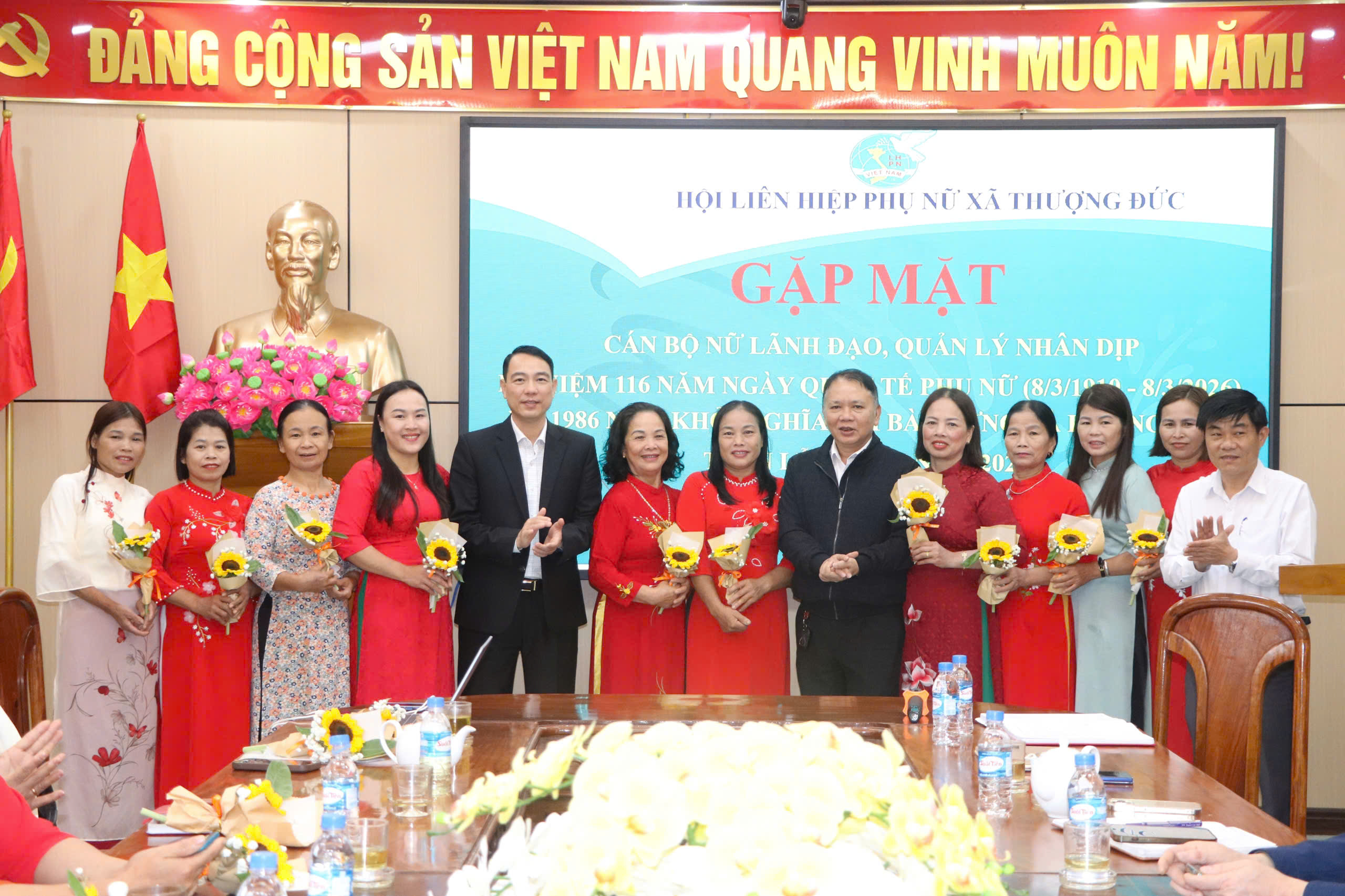 Lãnh đạo xã Thượng Đức tặng hoa chúc mừng các đồng chí cán bộ nữ lãnh đạo, quản lý trên địa bàn nhân dịp kỷ niệm 116 năm ngày Quốc tế phụ nữ 8/3.