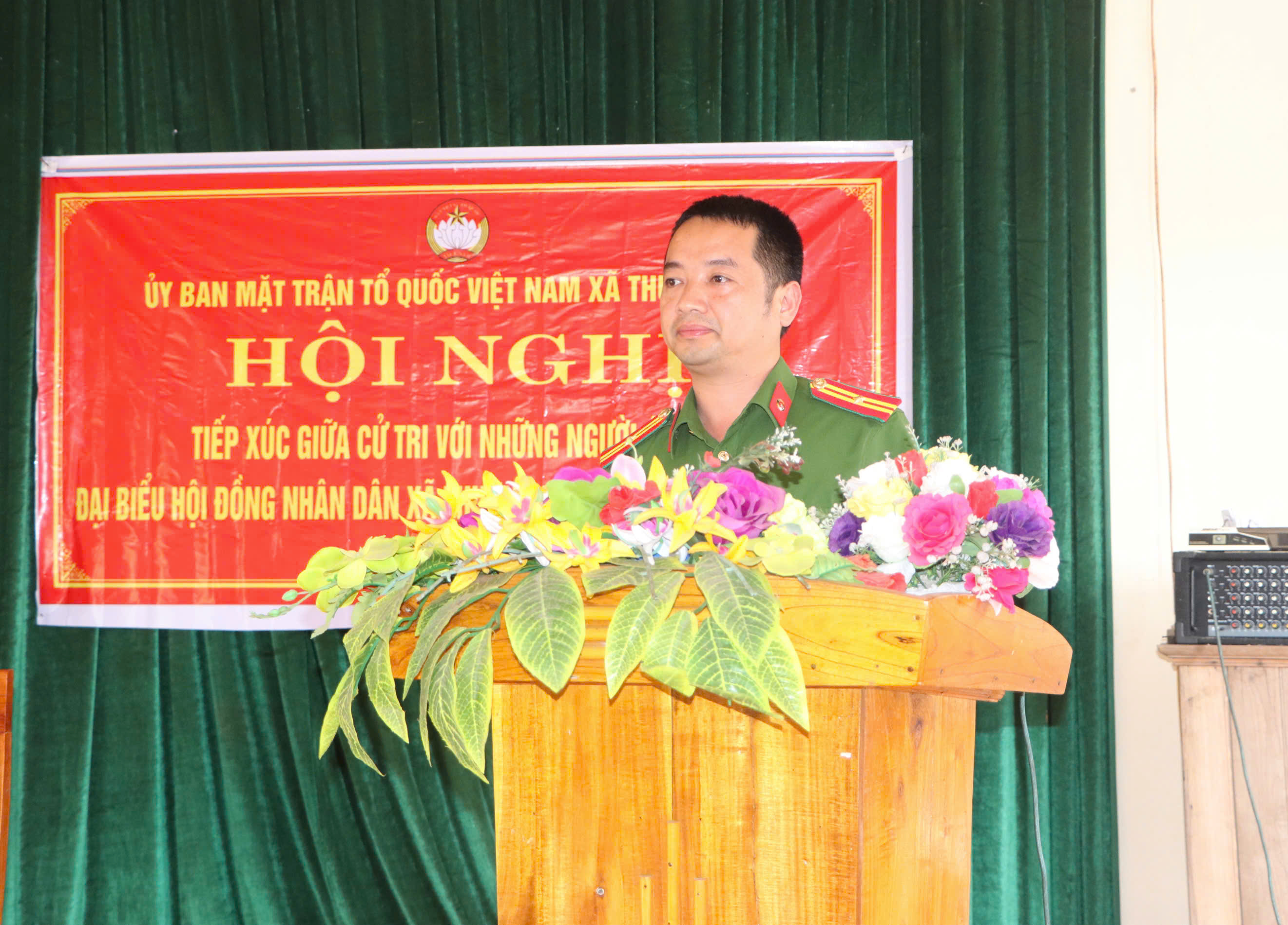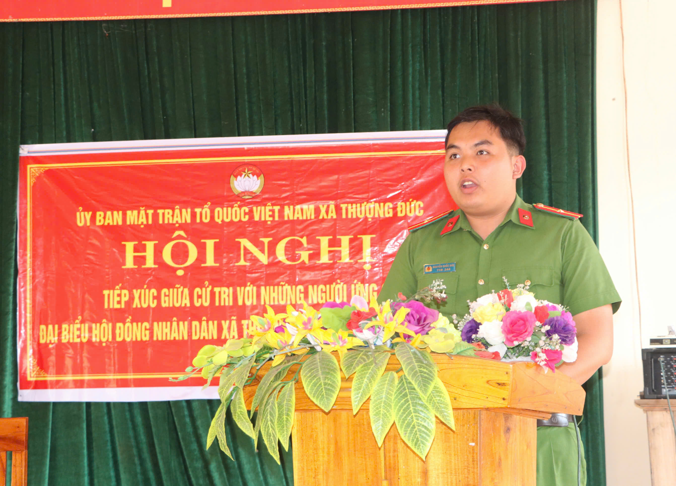 Ông Nguyễn Quốc Đức, cán bộ Công an xã trình bày chương trình hành động trước cử tri