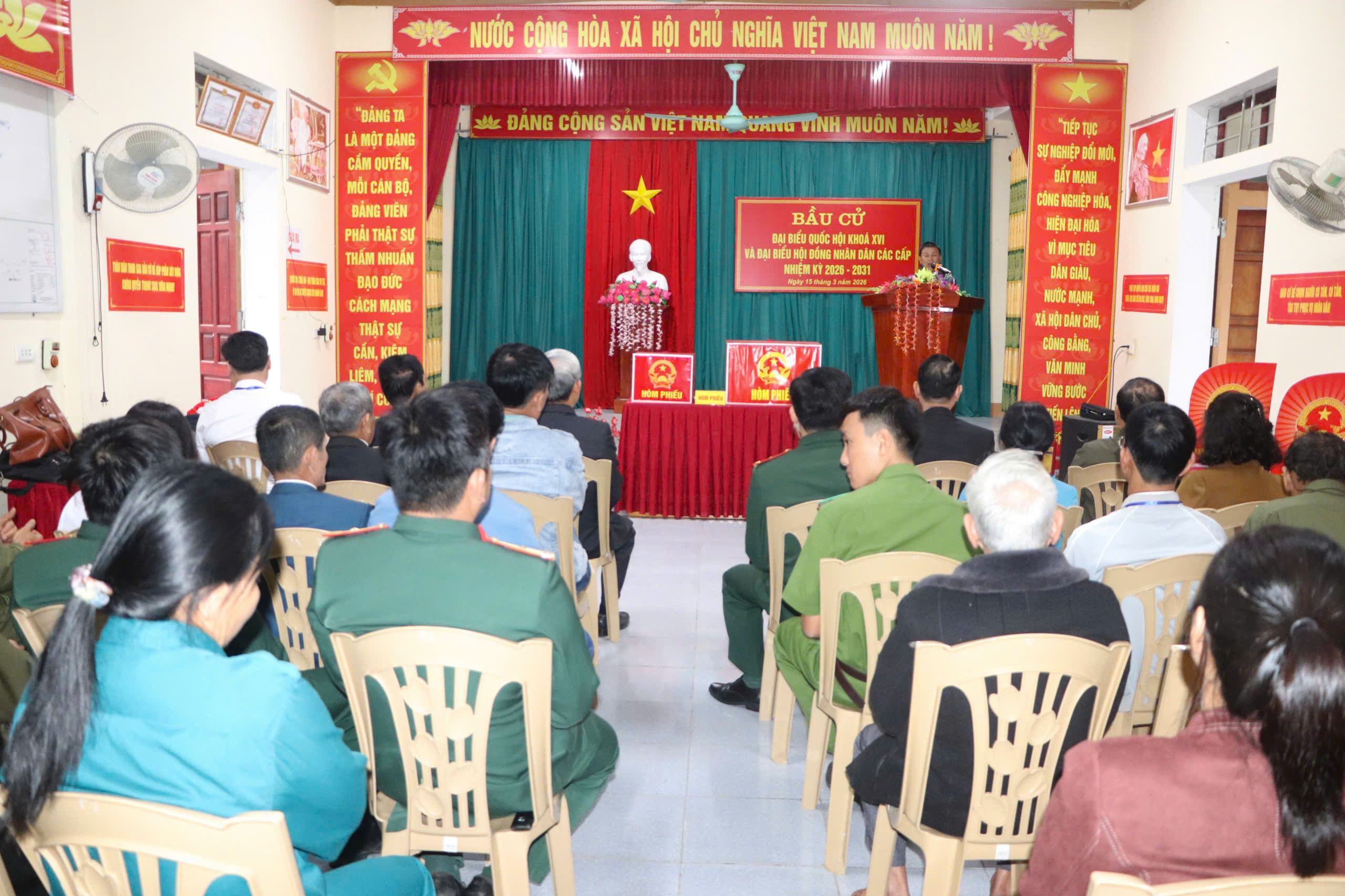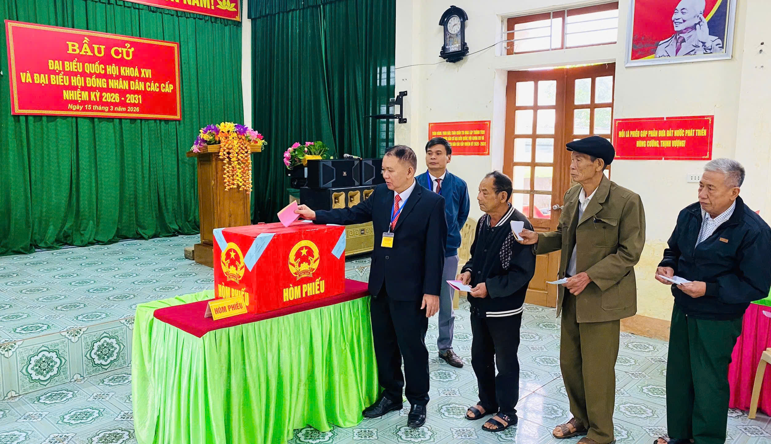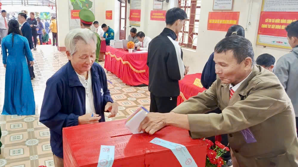 Ngay từ sáng sớm, tại các khu vực bỏ phiếu trên địa bàn xã, công tác chuẩn bị đã được hoàn tất chu đáo. Cờ Tổ quốc, băng rôn, khẩu hiệu được treo trang trọng, tạo nên không khí rộn ràng, phấn khởi của ngày hội toàn dân. Lực lượng phục vụ bầu cử có mặt đầy đủ, sẵn sàng thực hiện nhiệm vụ, đảm bảo các điều kiện để cử tri tham gia bỏ phiếu thuận lợi, an toàn và đúng quy định.