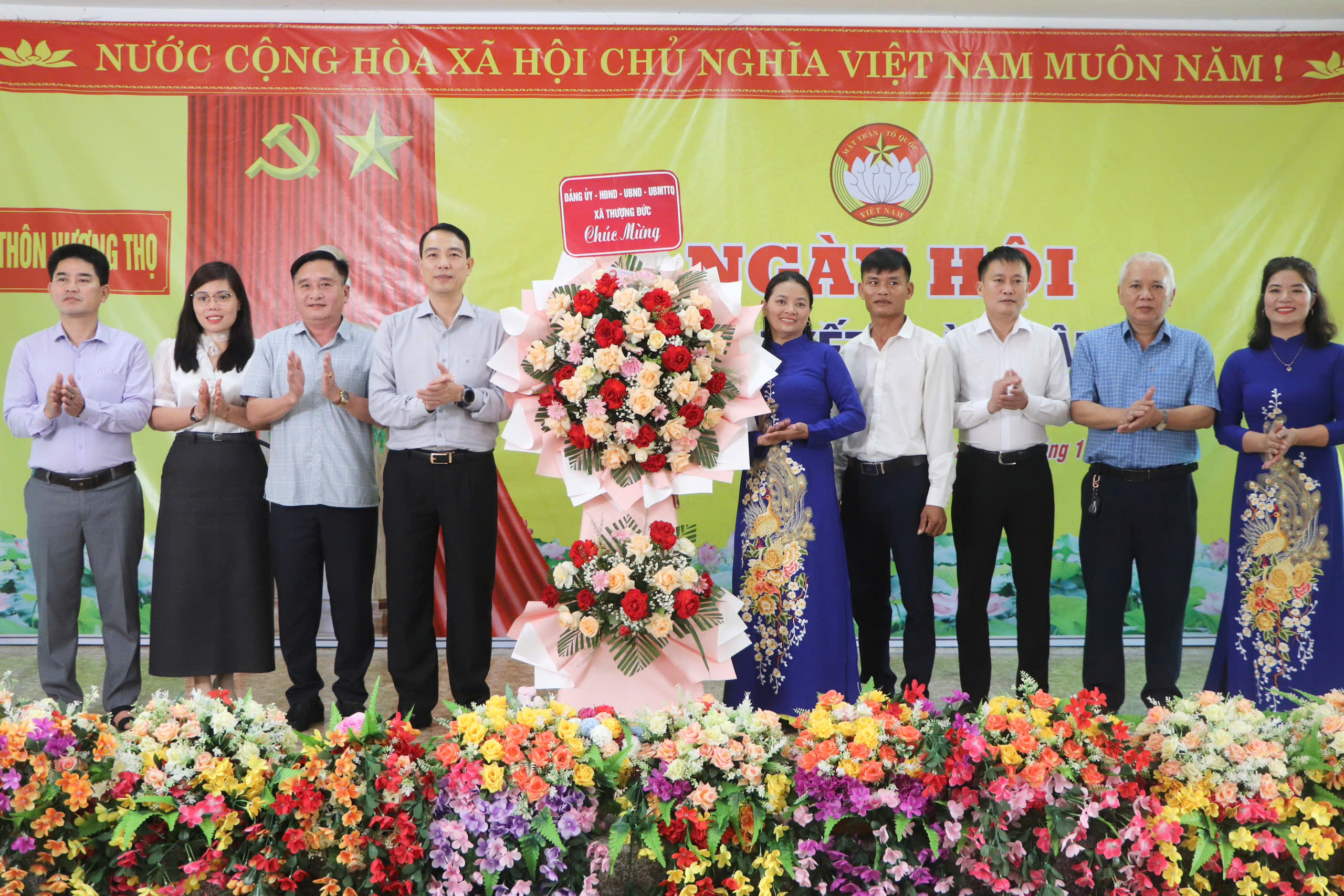 Đại diện lãnh đạo HĐND tỉnh, lãnh đạo địa phương tặng hoa chúc mừng đồng chí Nguyễn Quang Điền được bầu giữ chức Bí thư Đảng ủy, Chủ tịch HĐND xã Thượng Đức nhiệm kỳ 2025-2030.