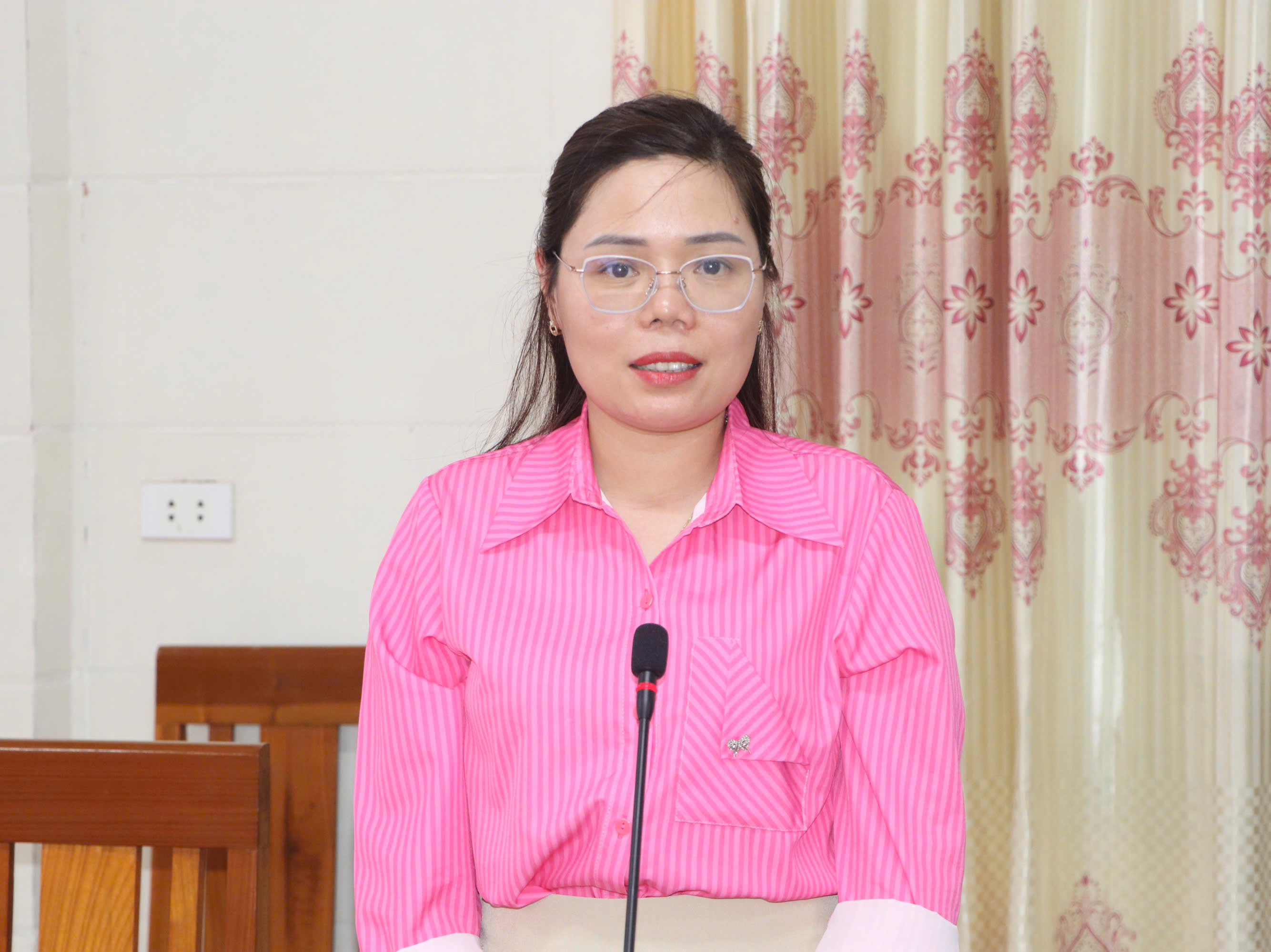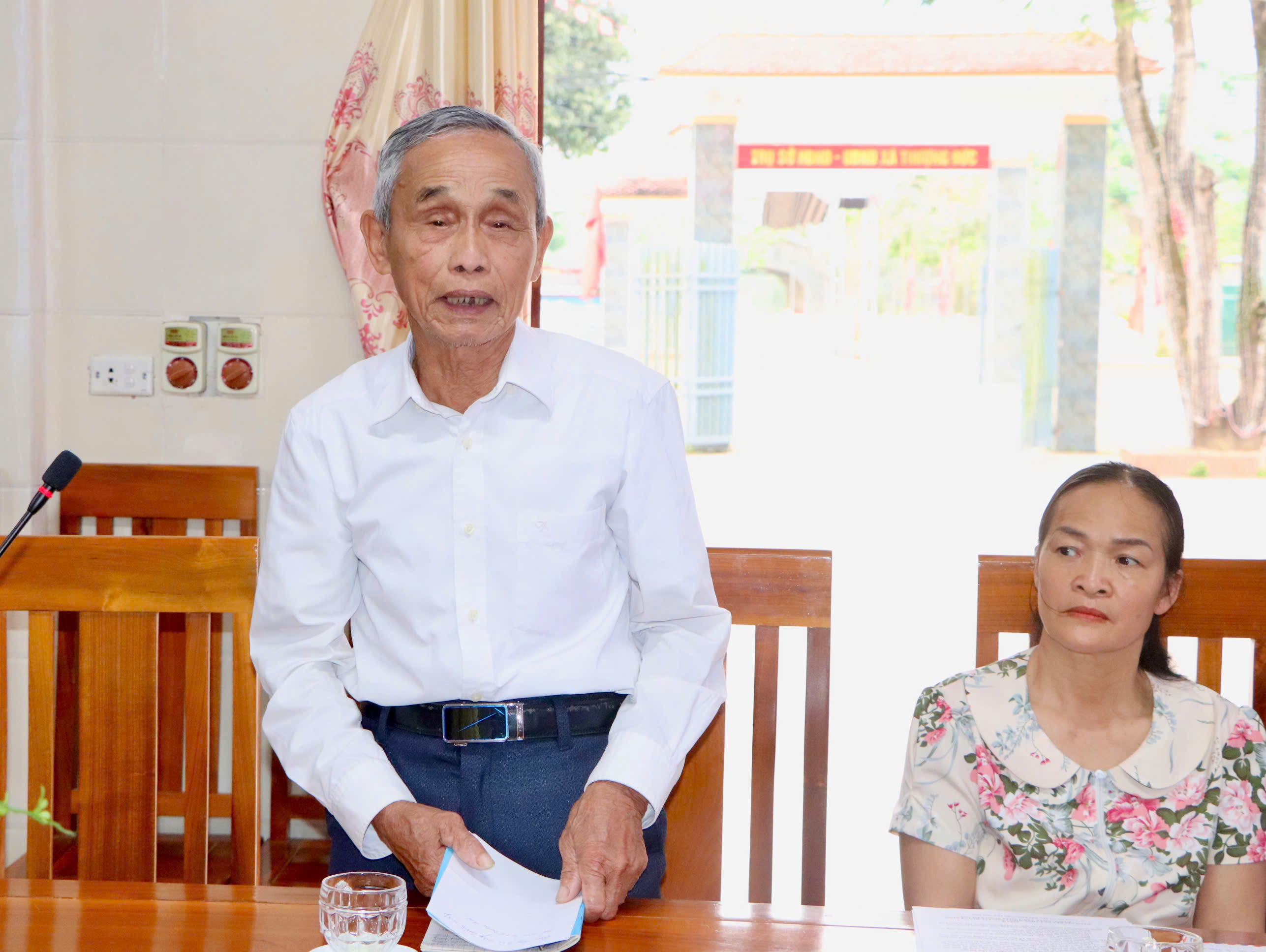 Đồng chí Nguyễn Ngọc Bích- Trưởng Phòng VH-XH xã báo cáo tổng quan về đền Ngũ Lâu