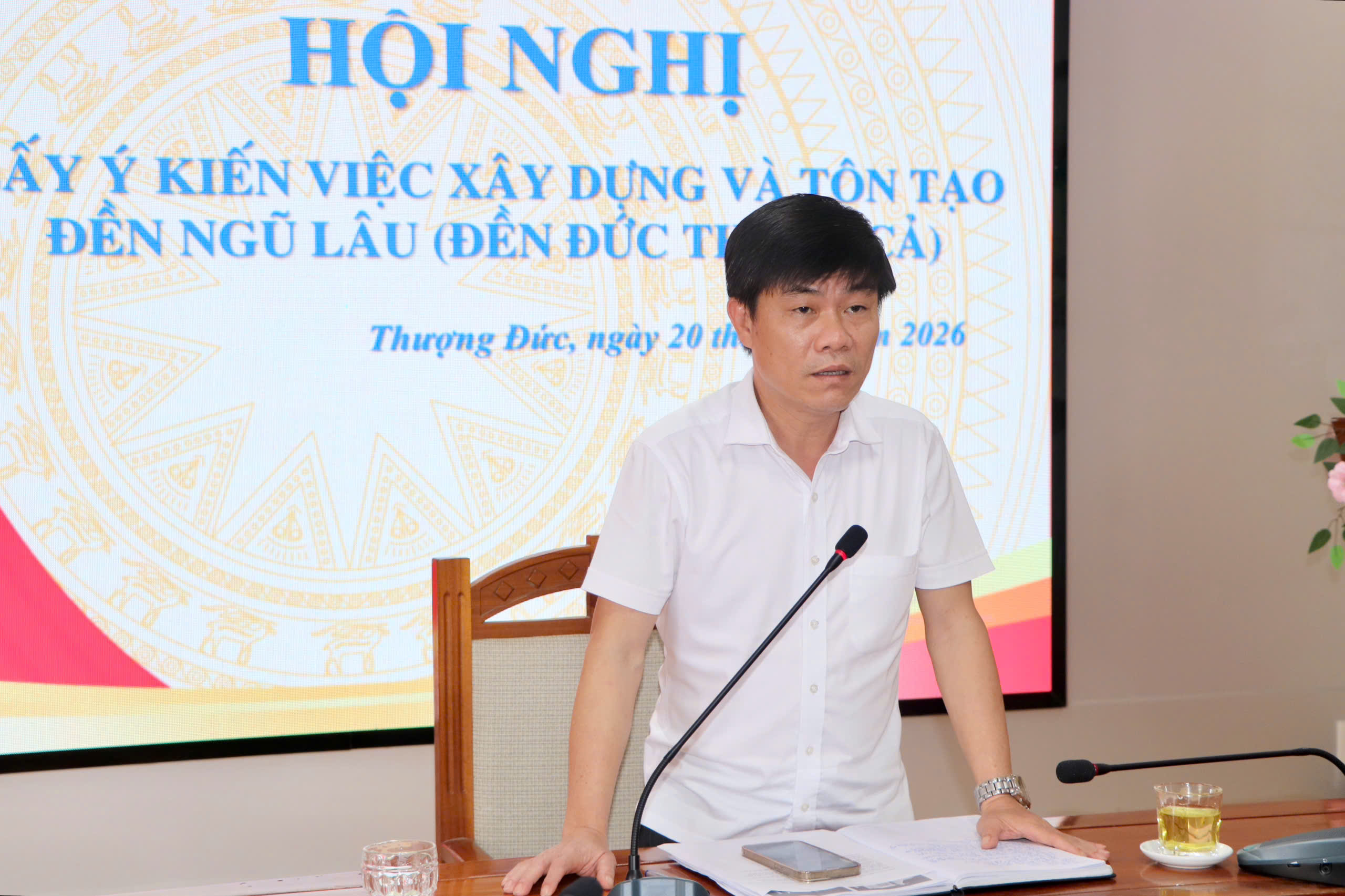 Tại cuộc họp, các đại biểu đã nghe báo cáo về hiện trạng đền Ngũ Lâu ( Đền Đức Thánh Cả)– một di tích tâm linh có giá trị lịch sử, văn hóa quan trọng trong đời sống của Nhân dân xã Thượng Đức qua nhiều thời kỳ. Ngôi đền cũ là một tòa nhà 5 tầng lầu, dựng sát bờ sông, do bị ảnh hưởng lũ lụt nhiều lần nên đền bị sụt và trôi mất. Sắc phong của đền hiện đang được lưu trữ tại Đền Phùng - xã Thượng Đức; hàng năm vào ngày Lễ đền 29/2 chính quyền và Nhân dân địa phương đều tụ họp về tổ chức rất trang trọng. Nay Chính quyền và Nhân dân xã đã lên kế hoạch xây dựng, tôn tạo thành một ngôi đền trên nền đất cũ nhằm bảo tồn giá trị truyền thống, đồng thời đáp ứng nhu cầu sinh hoạt tín ngưỡng của nhân dân.