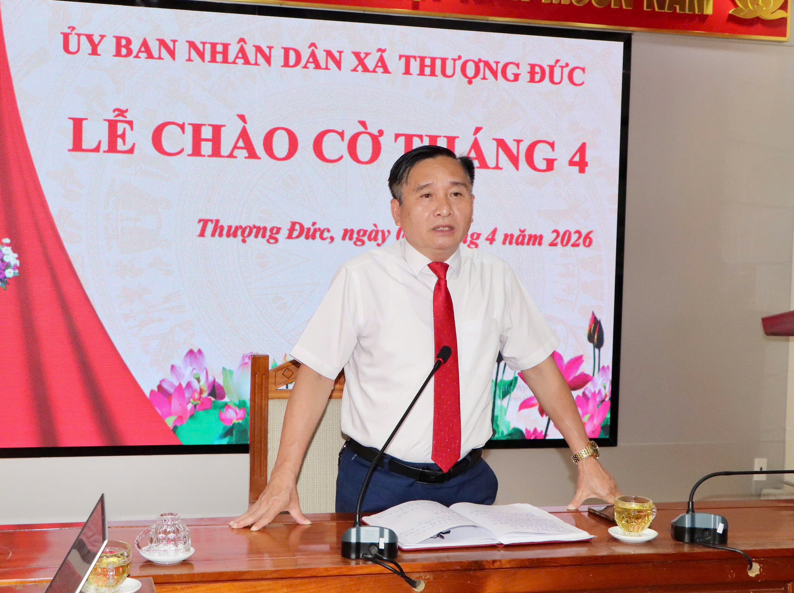 Trong không khí trang nghiêm, các đại biểu đã thực hiện nghi thức chào cờ, hát Quốc ca, thể hiện tinh thần trách nhiệm và lòng yêu nước. Sau nghi lễ, lãnh đạo UBND xã đã đánh giá tình hình thực hiện nhiệm vụ tháng 3, ghi nhận những kết quả đạt được trên các lĩnh vực như phát triển KT-XH, đảm bảo QP-AN, công tác cải cách hành chính và giải quyết thủ tục cho người dân.