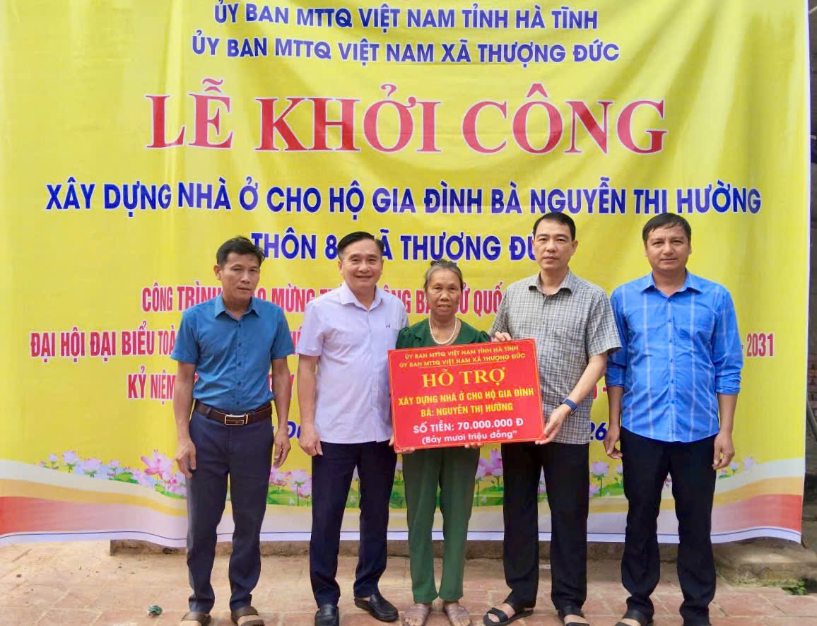 Gia đình bà Nguyễn Thị Hường nhiều năm nay phải sống trong căn nhà nhỏ đã xuống cấp nghiêm trọng nhưng không có điều kiện tu sửa, ảnh hưởng rất lớn đến cuộc sống sinh hoạt hàng ngày, đặc biệt là vào mùa mưa bão. Nhằm chia sẻ với khó khăn của gia đình, thông qua nguồn Quỹ “Vì người nghèo” tỉnh Hà Tĩnh về xây dựng, sửa chữa nhà cho người nghèo, hộ gia đình chính sách, hộ người có hoàn cảnh khó khăn về nhà ở, Ủy ban MTTQ xã Thượng Đức đã trích nguồn hỗ trợ 70 triệu đồng để gia đình bà Hường xây dựng ngôi nhà mới, số còn lại do anh em, họ hàng giúp đỡ.