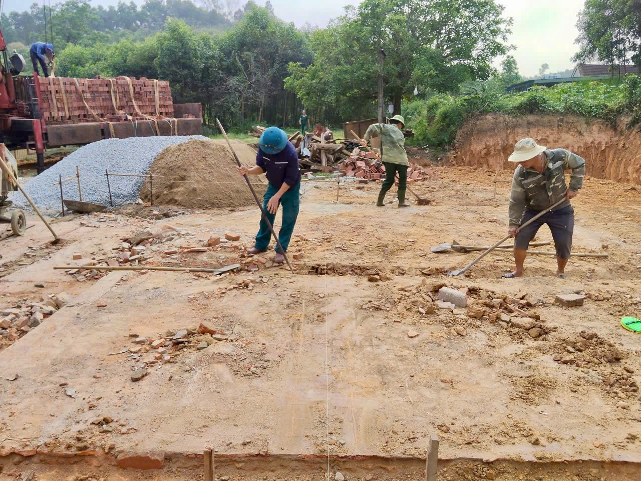 Lãnh đạo xã Thượng Đức dự lễ khởi công và trao số tiền hỗ trợ làm nhà cho gia đình