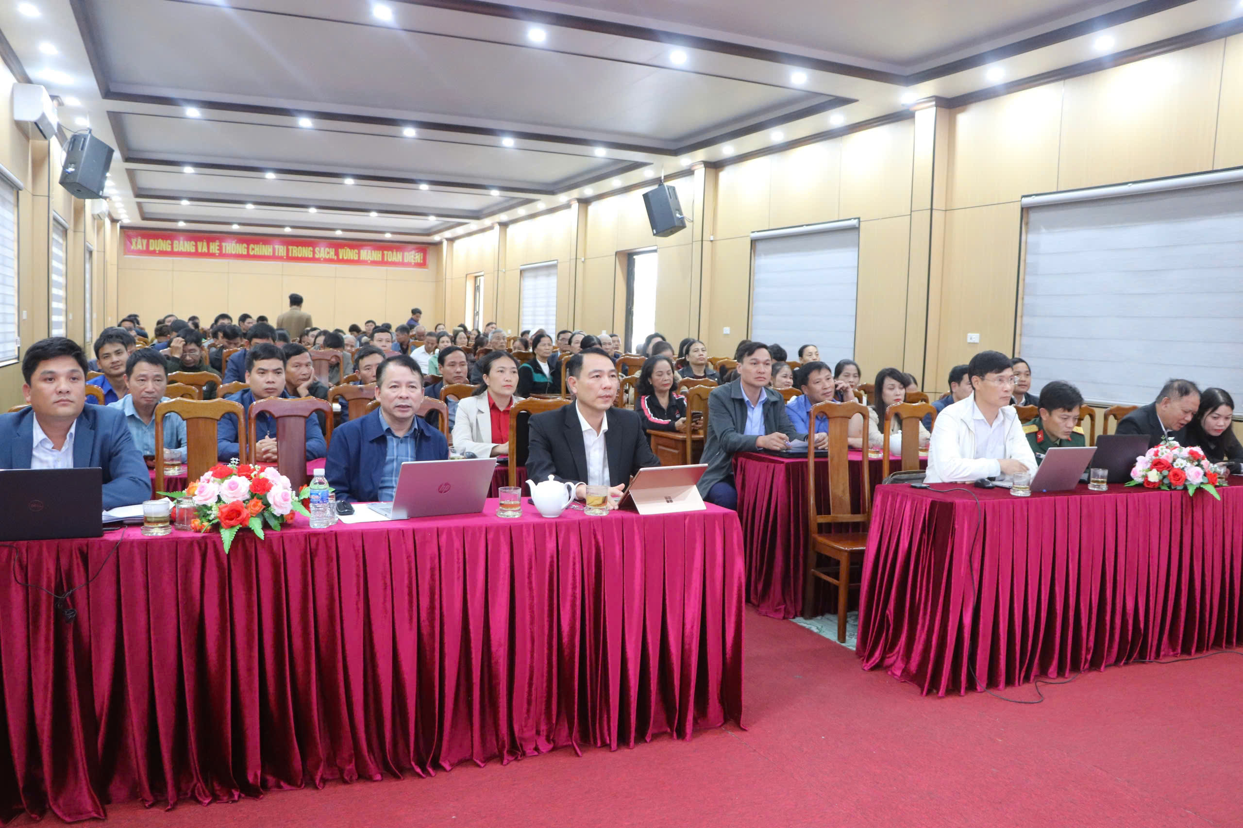 Tham dự tại điểm cầu xã có đồng chí NguyễnQuang Điền– Bí thư Đảng ủy, Chủ tịch HĐND xã; các đồng chí trong BTV Đảng uỷ; các phòng, ban ngành xã; Bí thư chi bộ, trưởng thôn, trưởng ban công tác mặt trận thôn và các đoàn thể.