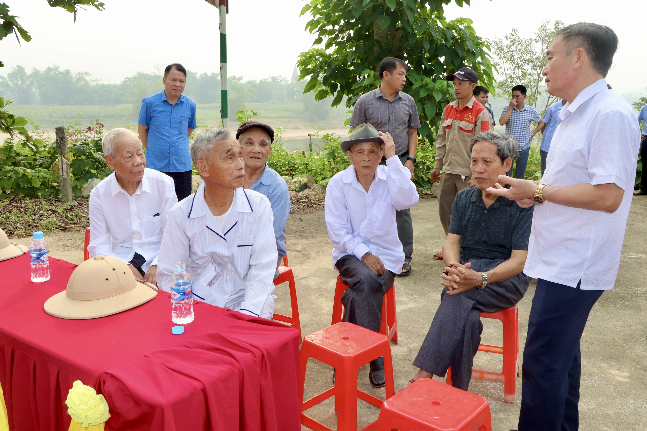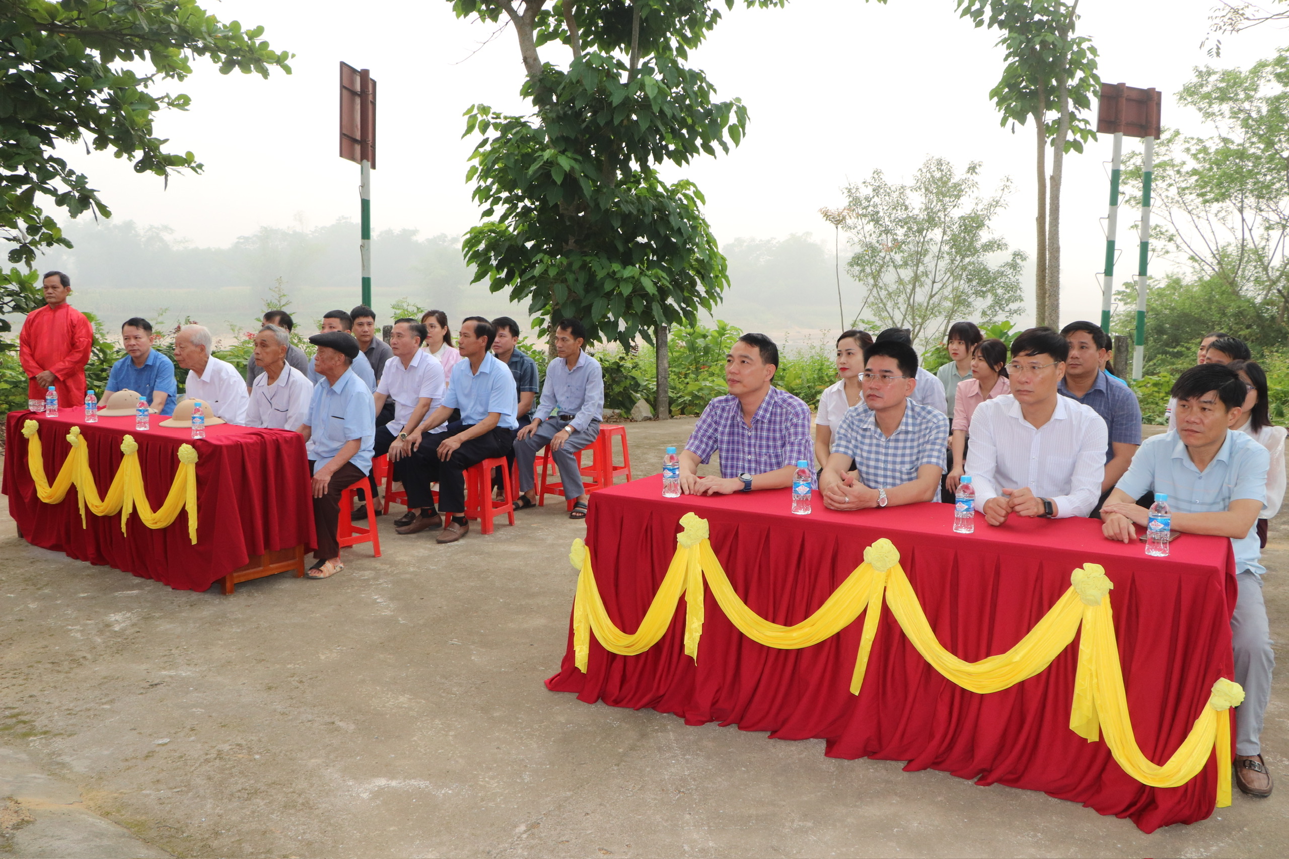 Lãnh đạo địa phương, các ban ngành, đoàn thể, các cụ cao niên cùng đông đảo bà con Nhân dân trên địa bàn tham dự Lễ động thổ Đền Ngũ Lâu.