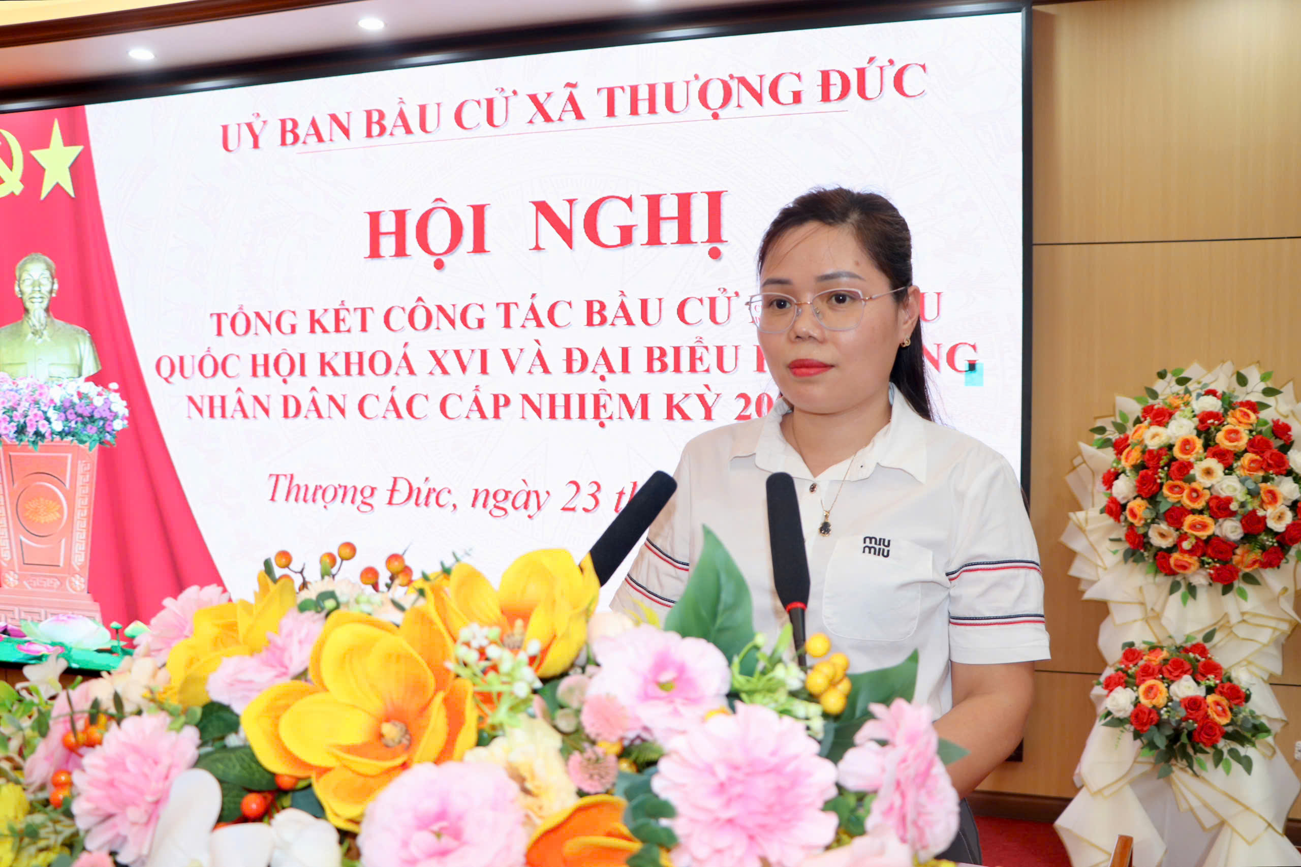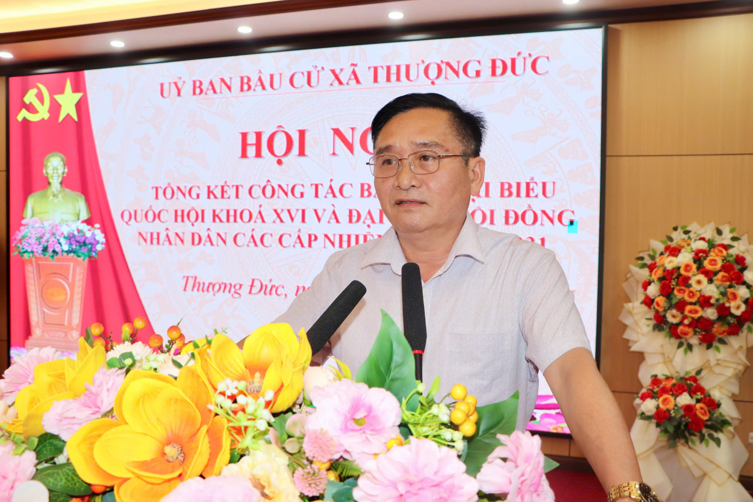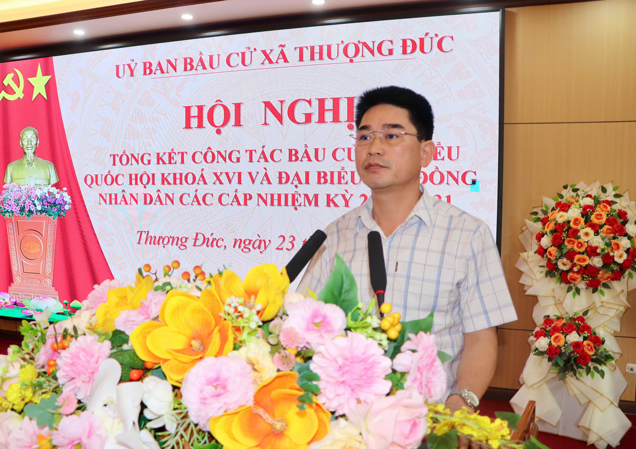 Phát biểu tại hội nghị, đồng chí Nguyễn Quang Điền- Bí thư Đảng ủy, Chủ tịch HĐND xã, Trưởng Ban chỉ đạo bầu cử xã và đồng chí Nguyễn Thanh Sơn- Phó Bí thư Đảng ủy, Chủ tịch UBND xã, Chủ tịch Ủy ban bầu cử xã ghi nhận và biểu dương sự vào cuộc đồng bộ, trách nhiệm của toàn hệ thống chính trị cùng sự tham gia tích cực của nhân dân, góp phần làm nên thành công của cuộc bầu cử.